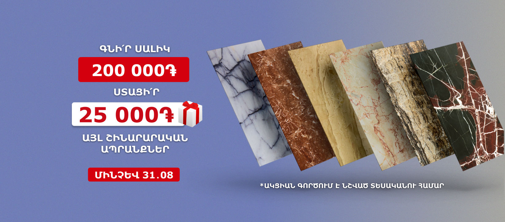 Գնի՛ր սալիկ 200 000 դրամի և ստացի՛ր 25 000 դրամի այլ շինարարական ապրանքներ:
